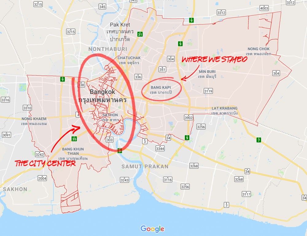We stayed in Bang Kapi, one of the 50 districts of Bangkok. It’s located east of the city center but was not less crowded and loud.