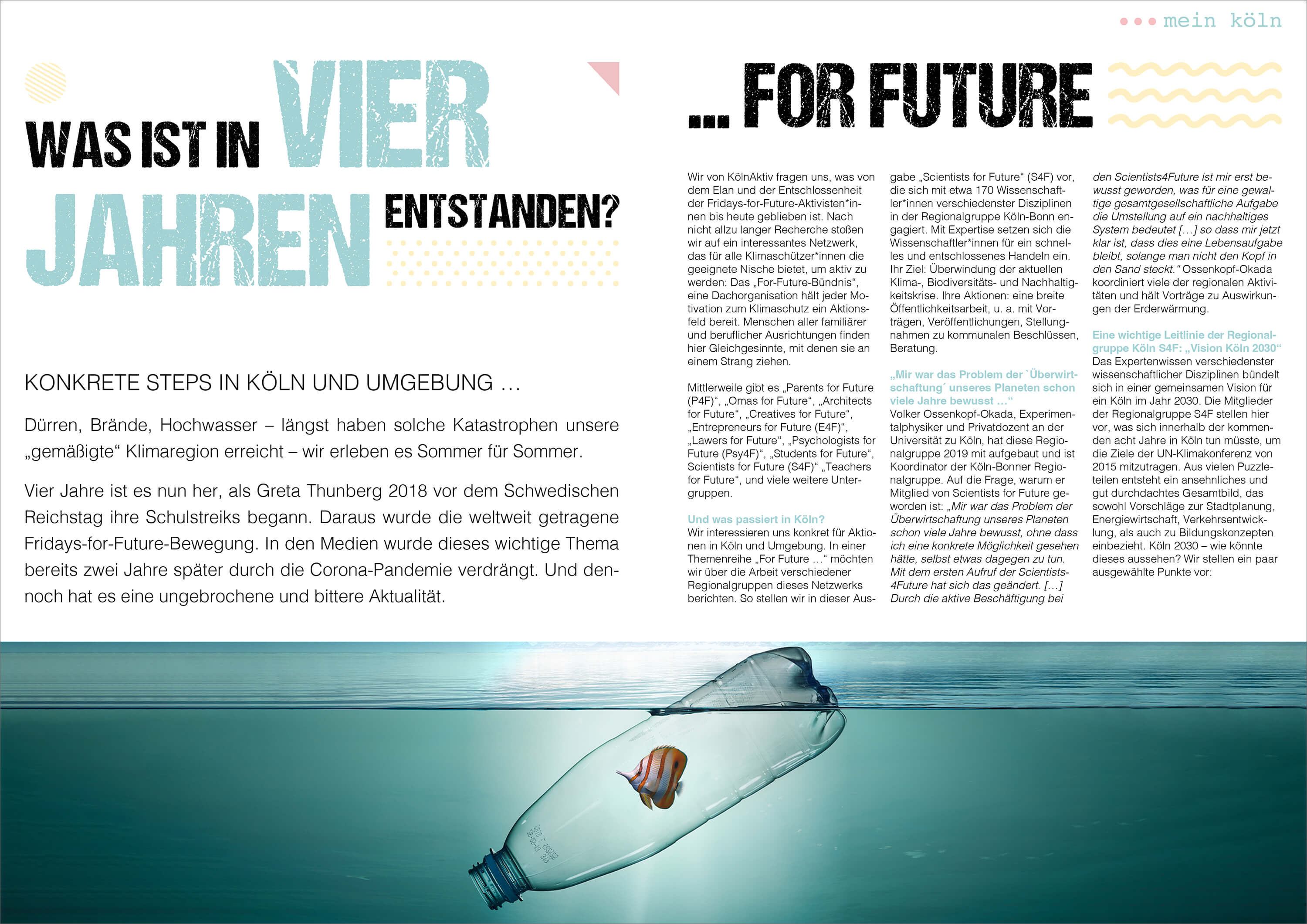 While I was training to be a „Mediengestalter Digital und Print“ in Cologne, Germany, this magazine cover, including two exemplary double pages, was created from a project assignment.